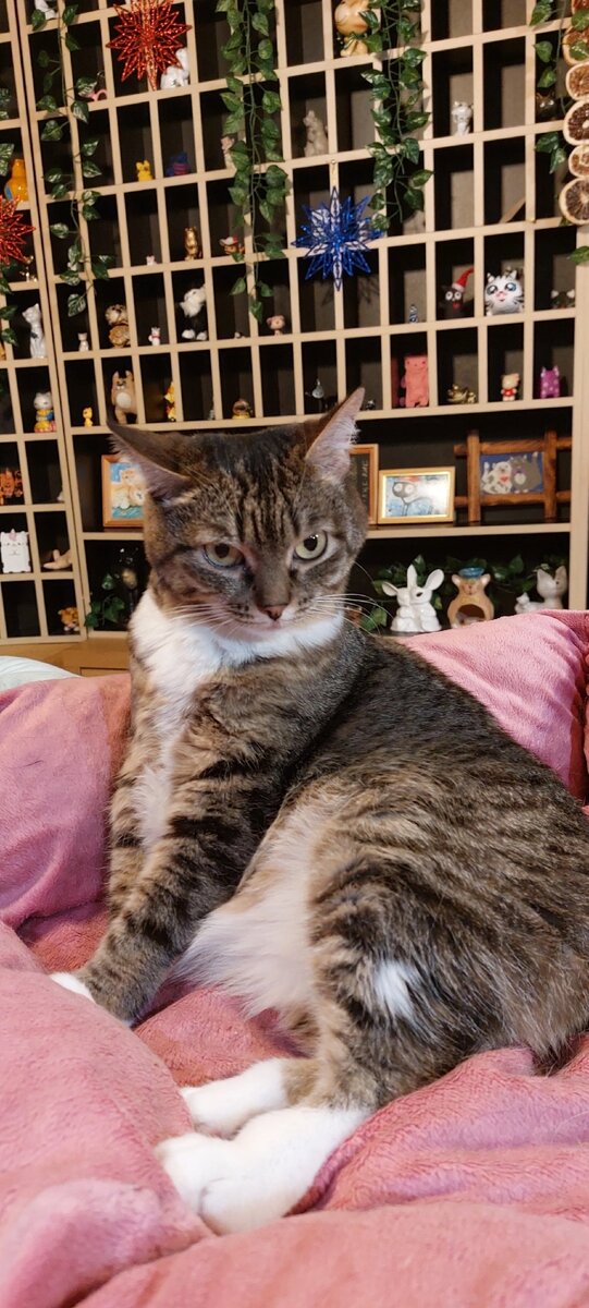 Была у нас в котокафе кошка Ромашка. Жирненькая, симпатичная и вредная, посмотрит - как матом пошлёт. От всей души и на все четыре стороны.