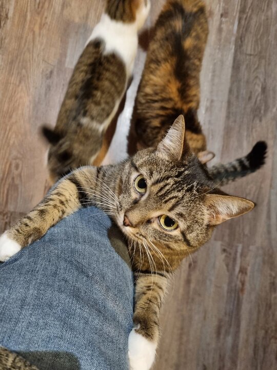 А парень скис - он бы рад, да недавно получил повестку. Куда ему Ромашку брать? Снаряды подносить? Нет уж, пусть сидит красавишна на барной стойке, да радуется жизни. Вдруг ей повезёт с хорошими хозяевами.