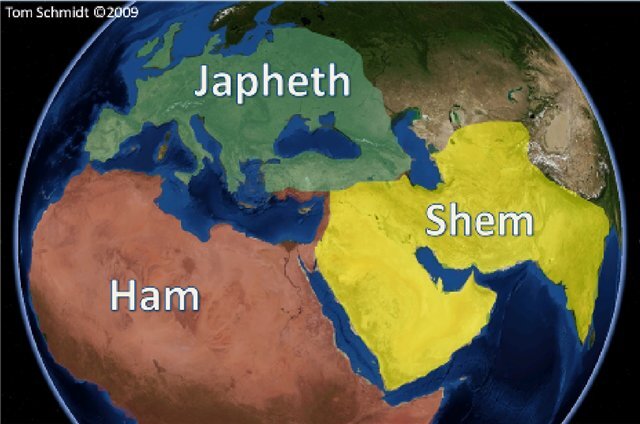 Но, согласно Библии, именно в Европу, в Северную Африку, а также на Ближний Восток пошли потомки сыновей Ноя, — соответственно, потомки Яфета (Иафета), Хама и Сима (после первоначального расселения с горы Арарат в Месопотамию, среди шумеров).