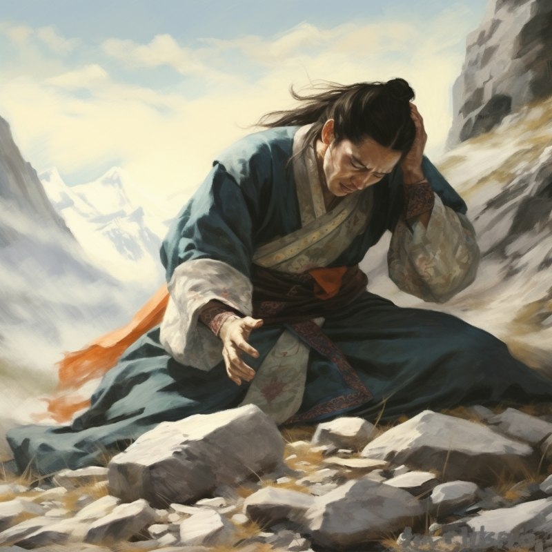 Не с пустыми руками вернулся просящий к учителю, но начались в его жизни болезненные испытания. Марпа придумывал для виновника массовых бед тяжелые задания и угнетал его непосильной работой.