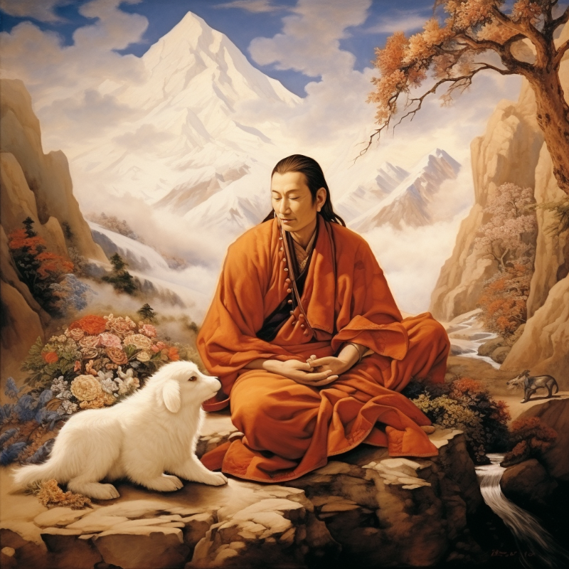 Миларепа достиг просветления в уединении, искоренив эго и привязанность. В горах у него появились ученики, которым он передал учение, исполняя песни.